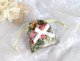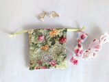 ばらなバラ柄の生地を使用した、手のひらサイズのミニ巾着です。