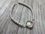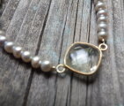 天然石: グリーンアメジスト(約12x12mm)、淡水パール(グレー)