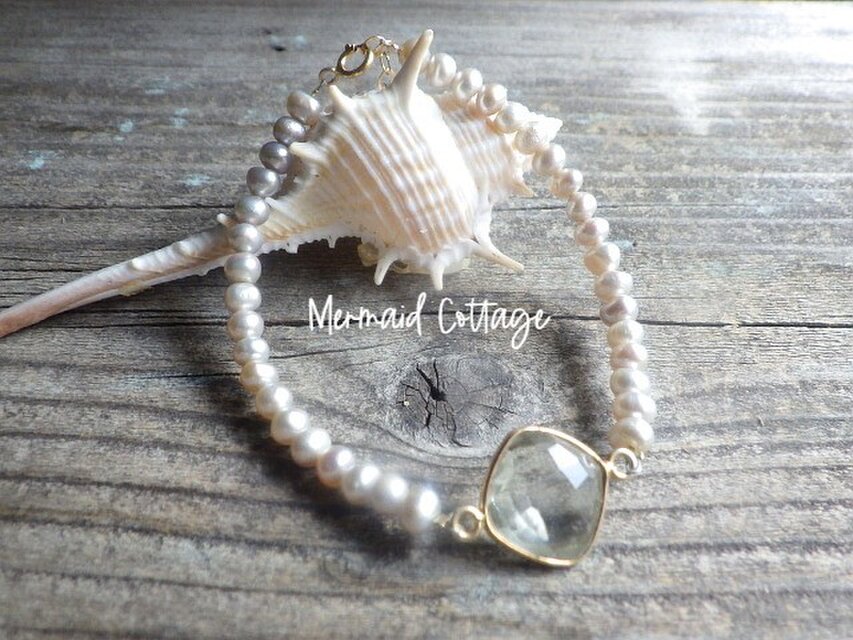 *14kgf* Morning Mist グリーンアメジストと淡水パールのヴェルメイユ・ブレスレット