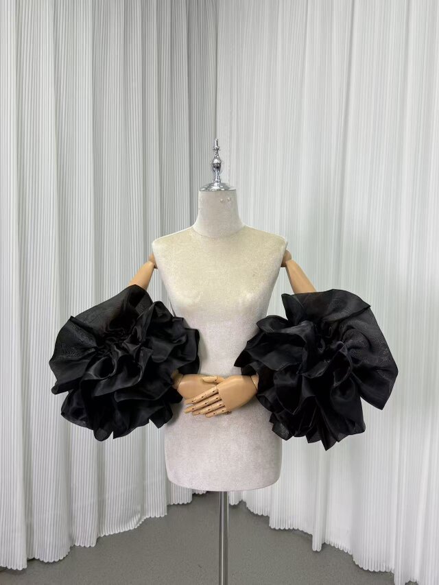 パフスリーブ ブラック 上質オーガンジー フリル袖 デザイン感 披露宴