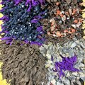 パープルを基調に、異なる素材や柄の布を組み合わせることで、角度や光によって表情が変わります。