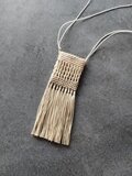 らせん状のパターンを袋状に結び、ネックレスにしました。