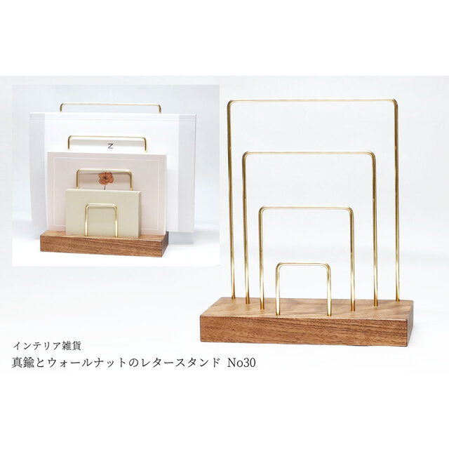真鍮とウォールナットで製作したレタースタンド(書類スタンド)です。