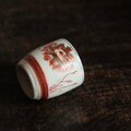 赤い花文様◆九谷焼 花文赤絵金彩猪口 酒器 工芸品 昭和レトロ インテリア 古民家