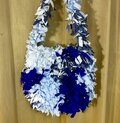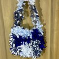 【一点もの】ブルー系フラワーデザインショルダーバッグ オリジナルブルー×シルバーの花モチーフショルダーバッグ