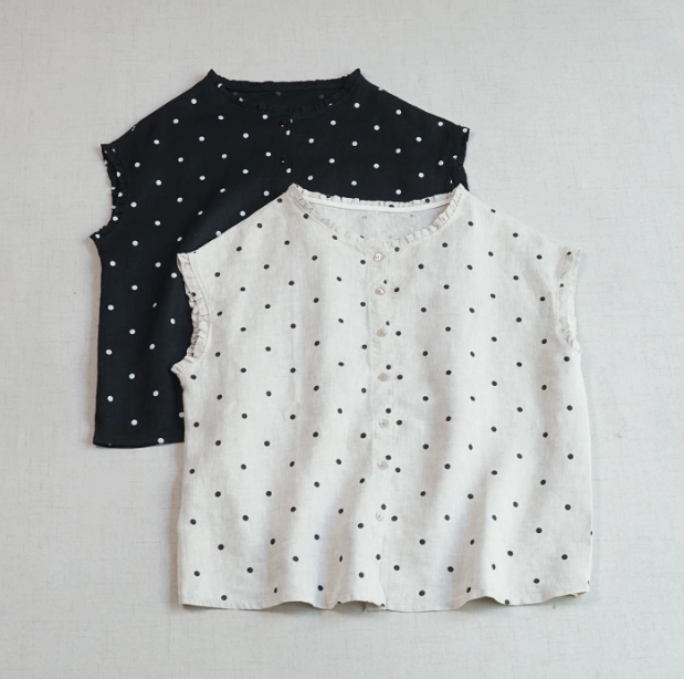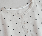大人可愛いブラウスは、1枚でも可愛いですが、重ね着して、衿ぐりや袖口からフリルをのぞかせたり。