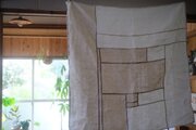 白とベージュのリネンをつなぎ合わせた、