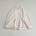 大人可愛いブラウスは、1枚でも可愛いですが、重ね着して、衿ぐりや袖口からフリルをのぞかせたり。