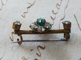 アンティーク エメラルドNavette/透明Glass のBarブローチ