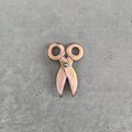 この作品は窯変釉薬を使い900℃の高温で焼き上げ、ハサミ型の中央にダイクロガラスを施しました。焼成の際の焦げをあえて部分的に残しています。