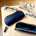 使うほどに手に馴染み、深い艶が増していくイタリアンレザー 『ブルガロ』を使用し、内装には、優しい手触りで眼鏡を優しく包み込む、シックなグリーンの国産ピッグスエードを合わせました。ケースを開けた瞬間にパッと目を引くコントラストが、大人の遊び心を演出します。