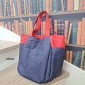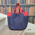 デニム×レッドの大きなトートバッグが出来上がりました。