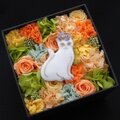 バラ(紫)のティアラをつけた白い猫の七宝焼ブローチ 【受注制作】