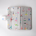 ヨガポーズの模様がユニークな手帳型スマホケースです。