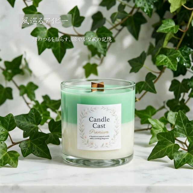 風巡るアイビー|グリーンの涼やかな風が静かに満ちるクロス木芯2層アロマキャンドル