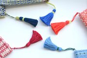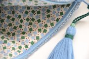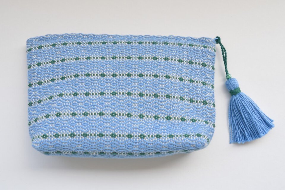 伝統的な柄を元に、オリジナルな要素を加え織ったポーチです。 ファスナーについたタッセルはポーチに合わせて作っています。