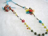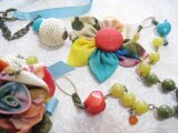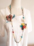 カーネリアン、アマゾナイト、麻玉、綿、リボン、真鍮など。