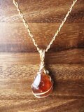 濃いオレンジ色のガーネットを金色のアーティスティックワイヤーで