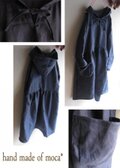 【受注製作/6.18再販売】W50長袖前ヒモリボンフード付きリネンワンピース★インディゴ