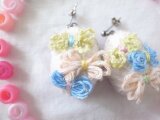 パステルカラーのふわふわリボンが立体的に付いたピアスです。