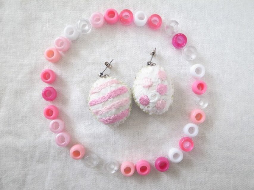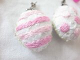 材料:綿のハギレ布・フェルト・わた・刺繍糸・ピアスの金具
