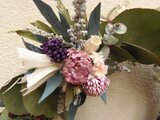 ドライユーカリに小さな花束をあちらこちらにアレンジしました