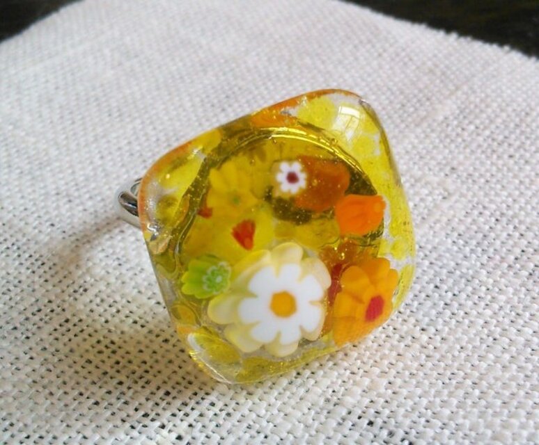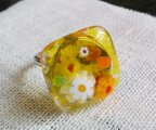 ガラスのリング(花・クリアイエロー)