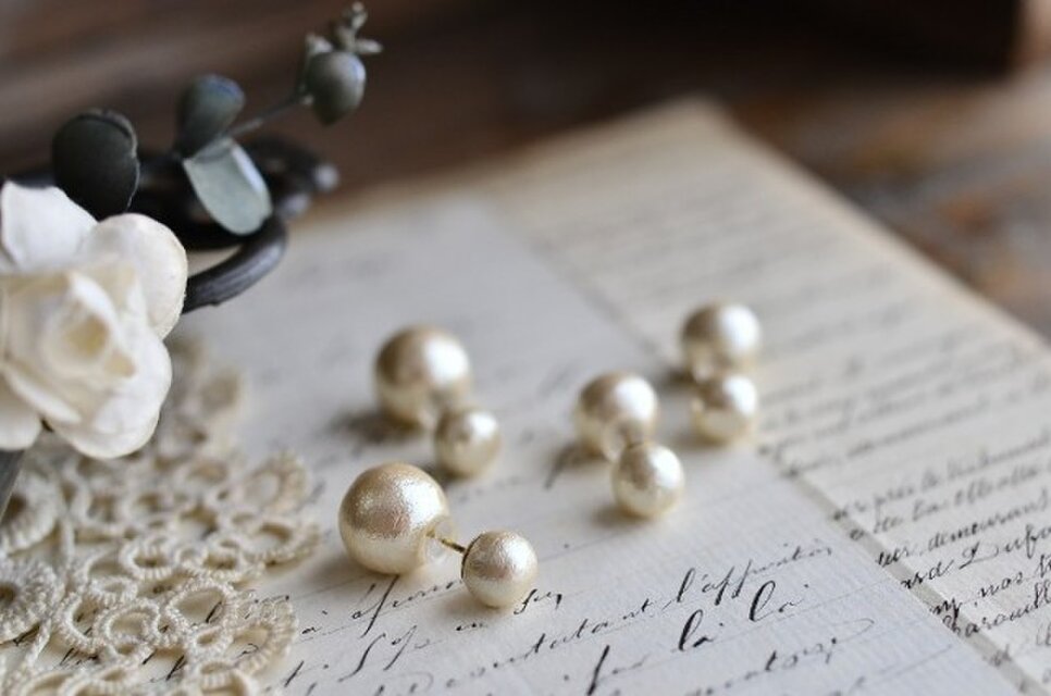 コットンパール特有の温かみのある質感と光沢が素敵なダブルコットンパールのスタッドピアスです☆