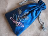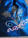 麦とリボンの刺繍のシルクのサシェ (ラベンダー)