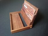 ブラックウォルナットの名刺入れこのたびは私の不手際で入金方法などに戸惑った際も、とても丁寧な対応をして頂きありがとうございました。 商品無事到着いたしました。 質感・色とも写真以上に好みで、とても嬉しかったです。またふたを閉じると、開口部ぴったりと組み合いまるで一枚の板のようにきれいに収まり、見た目だけでなく使用感にも優れていると思います。 大切に使用させていただきます。