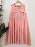 春★ハンドメイド 上質リネン ノースリーブタックOP★一枚限定