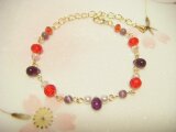 アラビアンをイメージしたレッド&パープル色のビーズをメインにアクセントとしてライトピンク&ホワイト色のビーズを散りばめたお洒落で大人っぽい雰囲気のブレスレッドとなっております☆