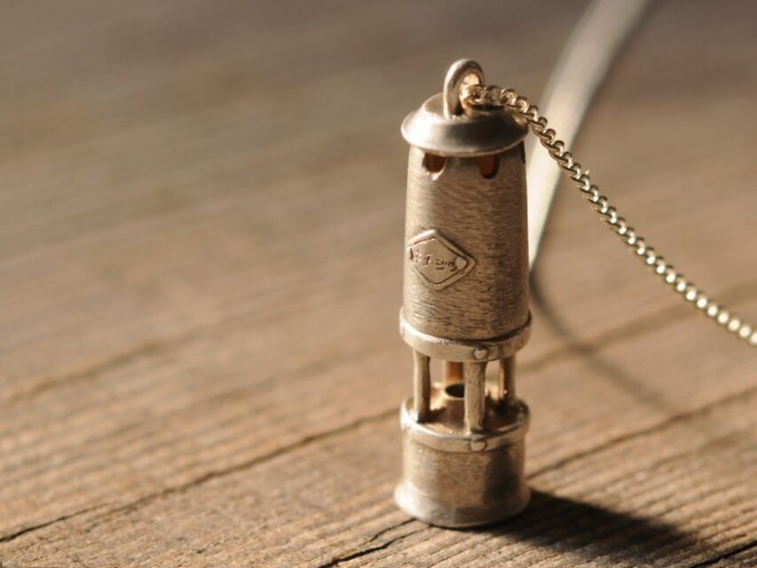 古い炭坑用のカンテラをモチーフにしたネックレス。