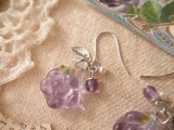 ライトカラーのアメジスト、淡水パール、小さなリーフチャームを合わせました。
