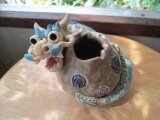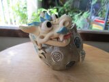 一つ一つ手練りで作った龍が巻きついた花器です。