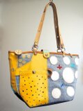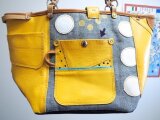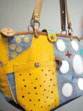 あざやかな黄色の革+デニム生地を使ったバッグ。