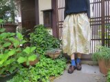 着物リメイク☆お花満開のクリーム色紬で変形バルーンスカート