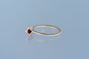 スピネルの原石をゴールドのボックスの中に閉じ込めたリングです。