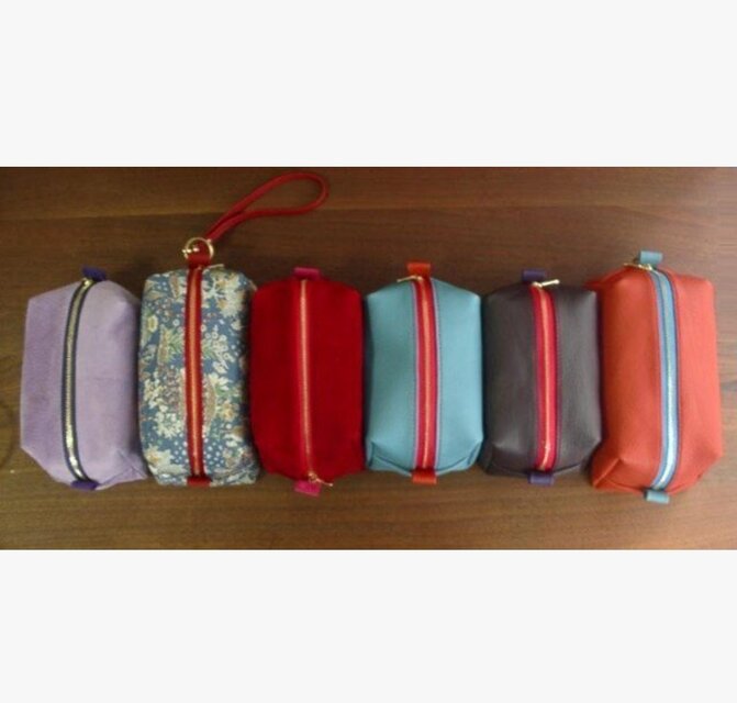 発色の良いシュリンクレザーを使った、ポーチです。