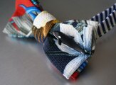 夏らしい綿麻のプリペラ生地で作ったチョウネクタイです。