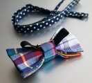 インドマドラスチェックを5種類組み合わせて蝶ネクタイにしました。