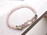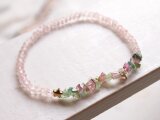 ローズクォーツと、ランダムにカットされたマルチカラートルマリンを使った、