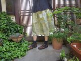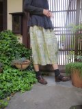 着物リメイク☆黄緑系の紬が優しいふんわり切り替えの75cm丈