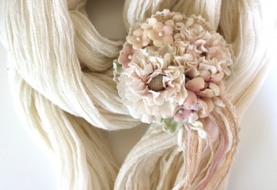 こちらは、ハンドメイドの布花のクリップ付きコサージュになります。