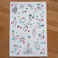 絵の具でドットを描いてから、ガリ版で印刷したハガキです。