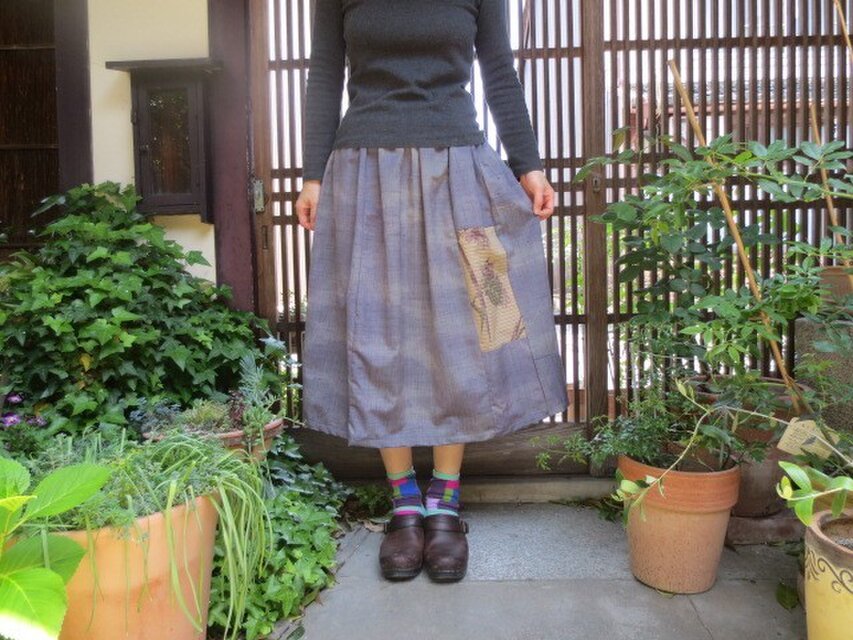 紬スカート☆しっとり優しい地味だけど華やかな77cm丈