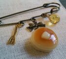 フォークとリボンチャーム、バーナーワークで作った蜂蜜をひとしずくつけて仕上げました。