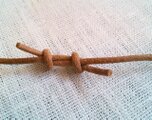 紐はナチュラルな雰囲気のうす茶の革ひもを合わせました。