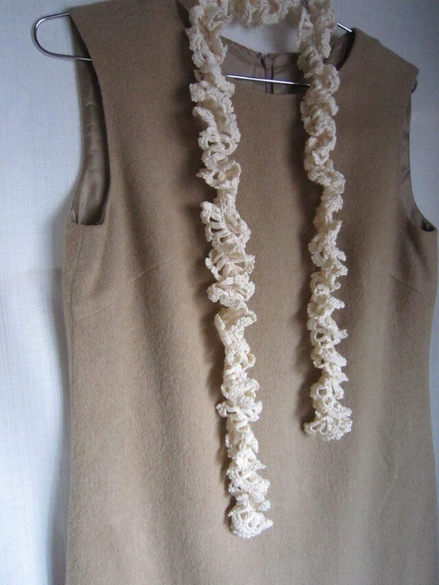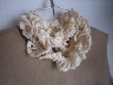 白い糸をたっぷり使って、ネックレスを編みました。フリルが自然にできる編み方です。