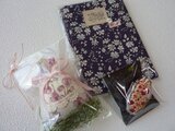 こちらのタイプは、文庫本カバー、ラベンダーポプリのサシェ(香り袋)、ピルケースの3点をセットにしました。